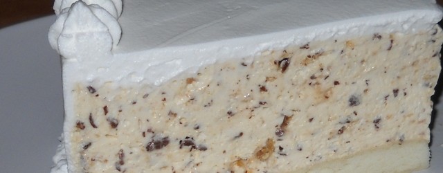 Kad se krema stegne, skinuti ivice kalupa, pa cijelu tortu premazati umućenim vrhnjem za šlag ili šlag pjenom ili šlag kremom, po ukusu.