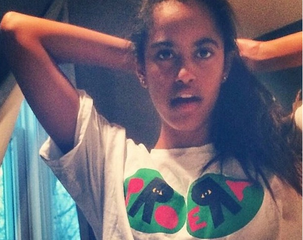 Iako autentičnost fotografije nije još potvrđena, Bijela kuća najavila je da će istražiti slučaj. Malia nosi bijeli t-shirt s logom benda, a u pozi je kao da popravlja frizuru.