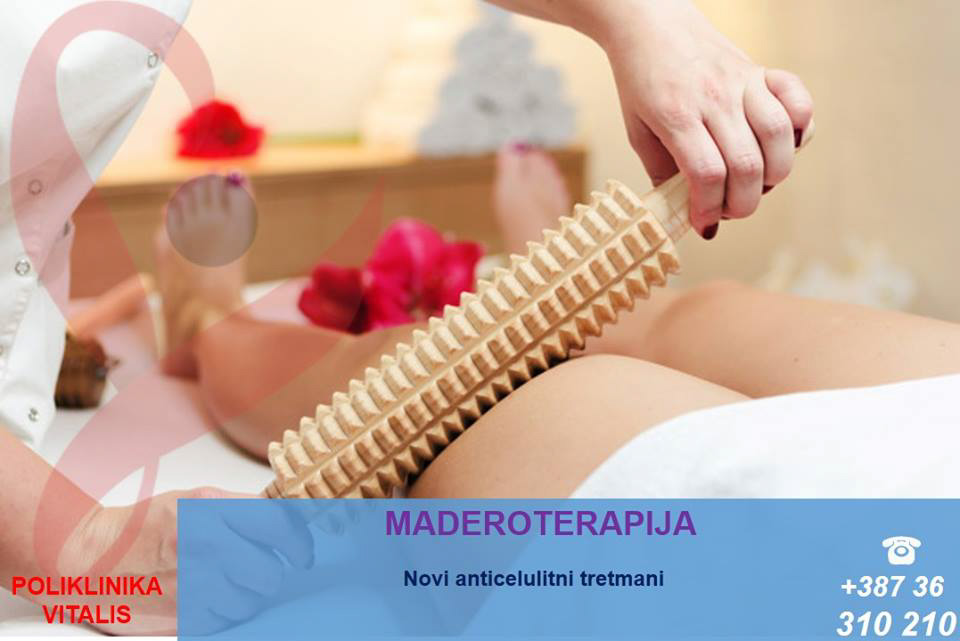Maderoterapija je poseban vid anticelulit masaže, koja se izvodi specijalno dizajniranim drvenim oklagijama, rolerima i kupama! U osnovi ove anticelulit tehnike je stimulacija limfne drenaže, što je prvi i osnovni korak u borbi protiv upornog celulita na nogama i bedrima. A gdje god stimuliramo limfnu drenažu, kao poželjan efekt osim estetskog imamo i kompletnu detoksikaciju i relaksaciju cijelog organizma!