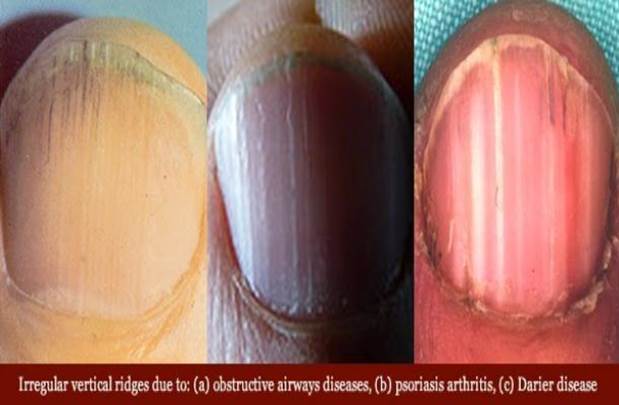 2. Debeli nokti: Debeli nokti nisu normalni, nisu prirodni. Ako su vam nokti iznimno debeli to može biti povezano s problemima s plućima. Debeli nokti s brazdama mogu značiti gljivičnu infekciju, a razdvojeni nokat, napuknut po sredini, može značiti probleme sa štitnjačom i psorijazu. Neobično debeli nokti mogu biti i rezultat loše cirkulacije.
