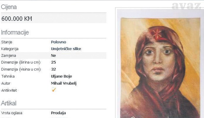- Prodajem ili tražim posrednika u prodaji s poznavanjem ruskog tržišta umjetnina - piše još u oglasu.